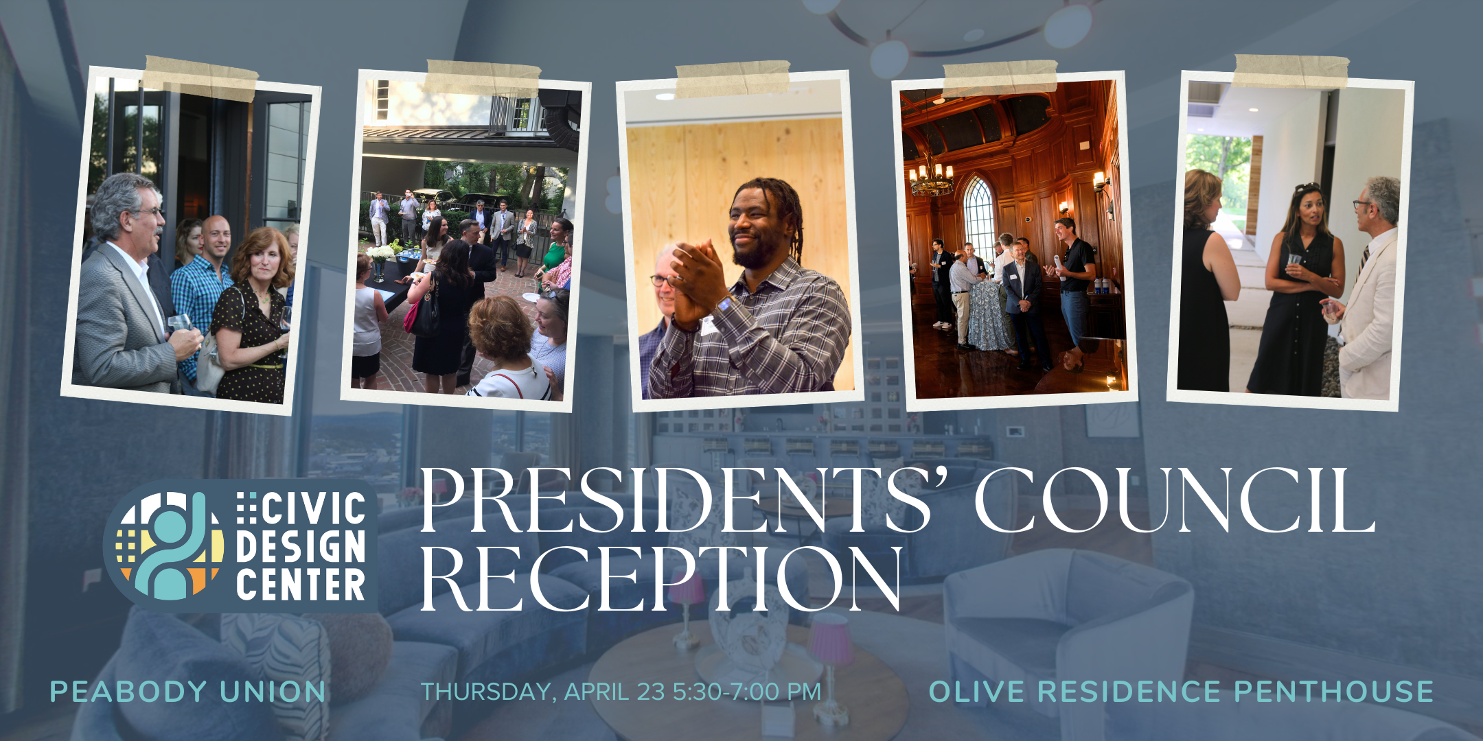 If you are a Presidents’ Council member and you would like to RSVP, please send an email to veronica at civicdesigncenter dot org. If you are not currently giving at the Presidents’ Council level, please visit this link to learn more about the benefits and consider increasing your donation today!