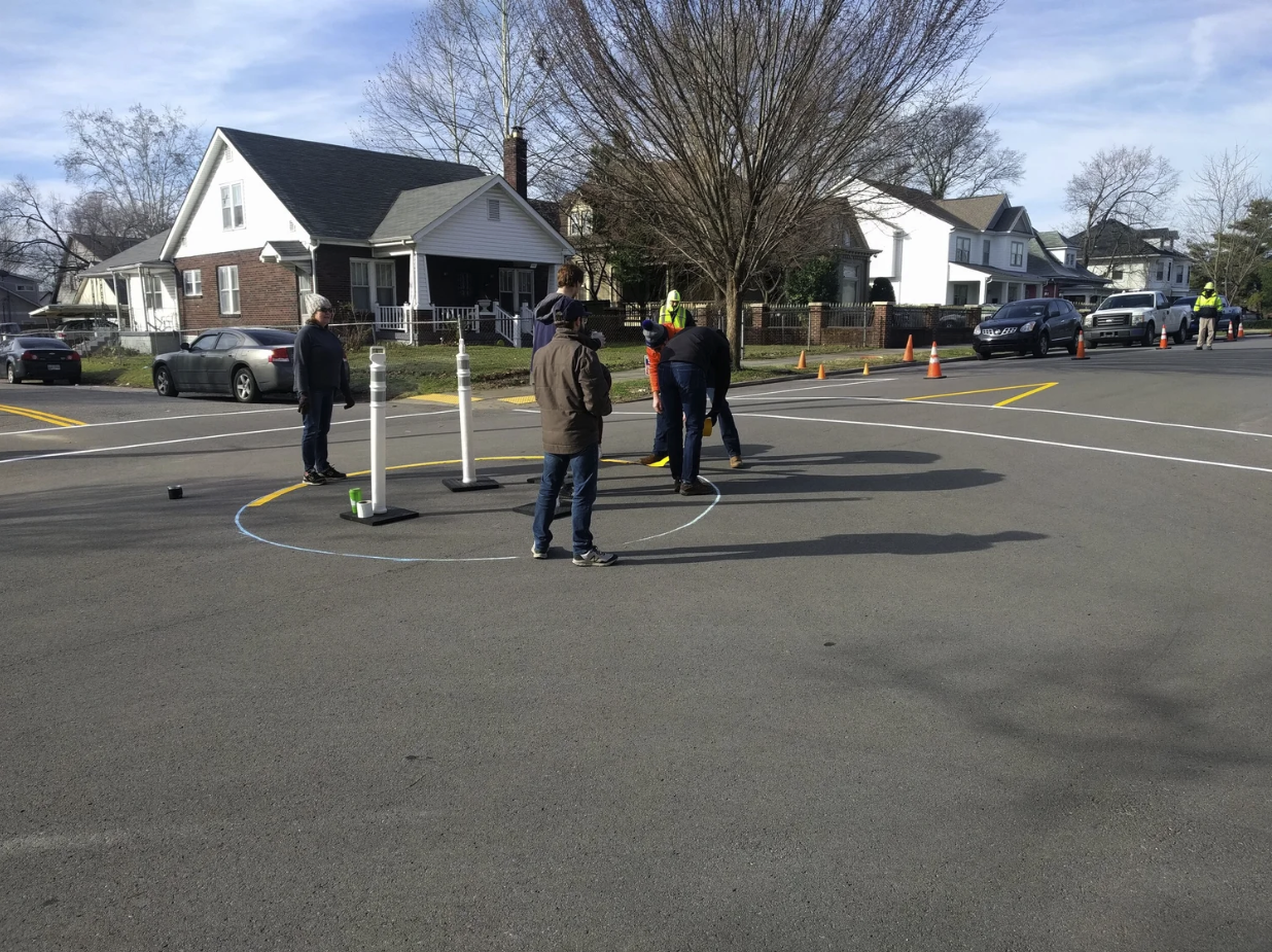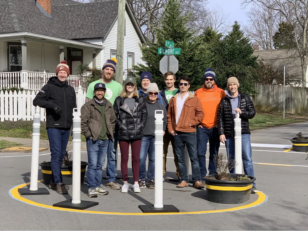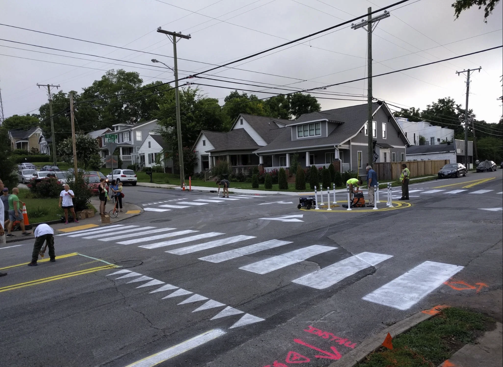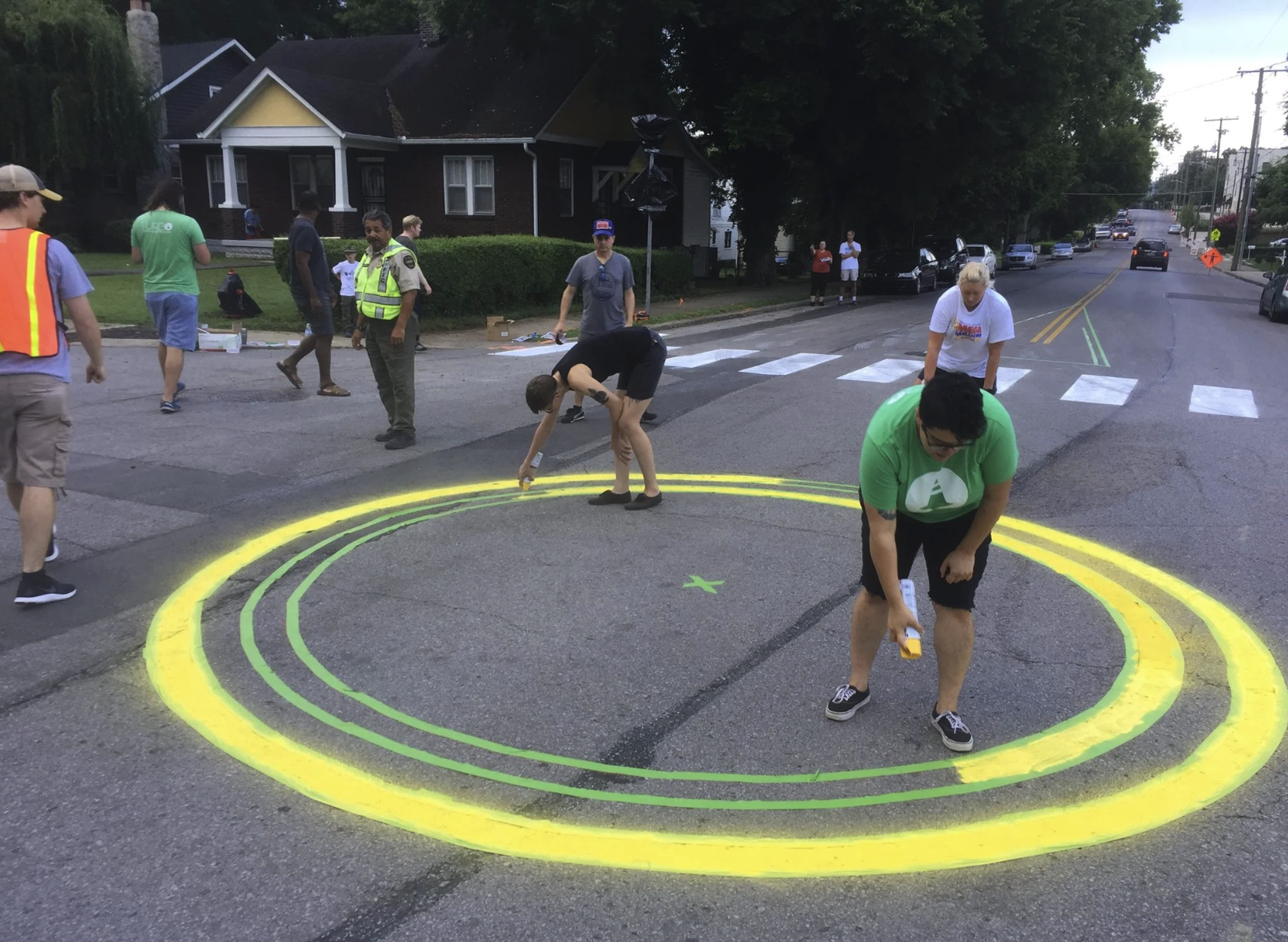 TURBO joined forces with neighbors in the 12 South Neighborhood to bring traffic calming techniques from the Belmont-Hillsboro traffic circle! This circle, located at the intersection of 11th and Gilmore Avenue, is the third installation of its kind near 12th Ave S.