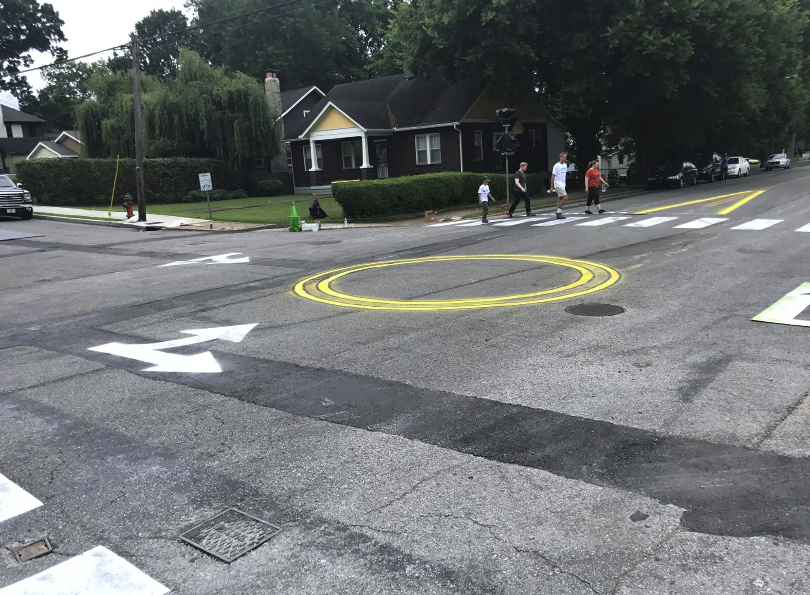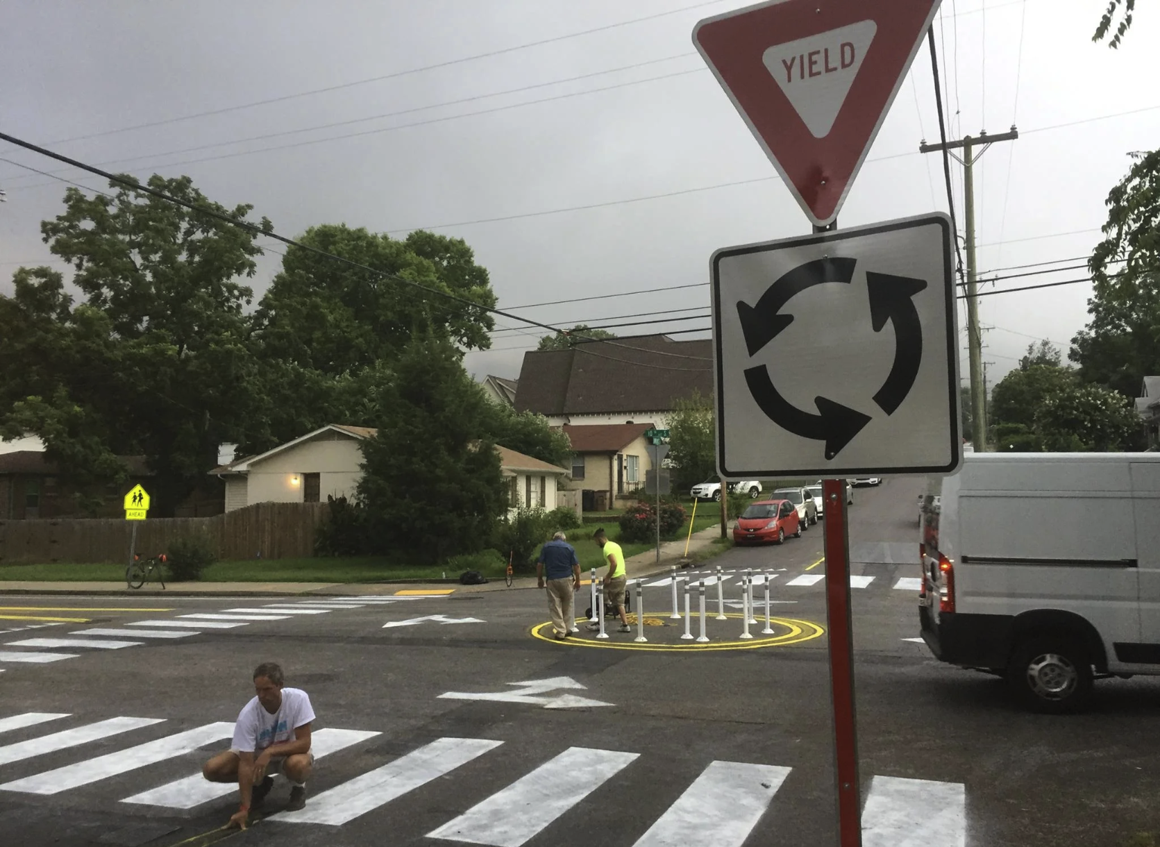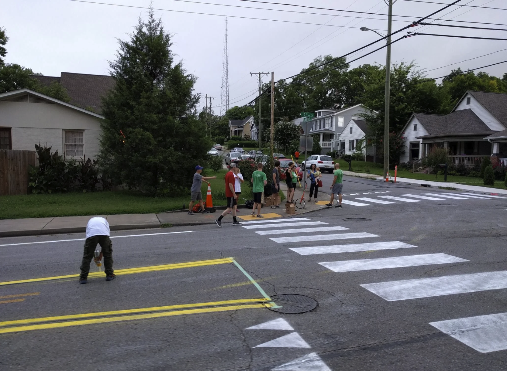 TURBO joined forces with neighbors in the 12 South Neighborhood to bring traffic calming techniques from the Belmont-Hillsboro traffic circle! This circle, located at the intersection of 11th and Gilmore Avenue, is the third installation of its kind near 12th Ave S.