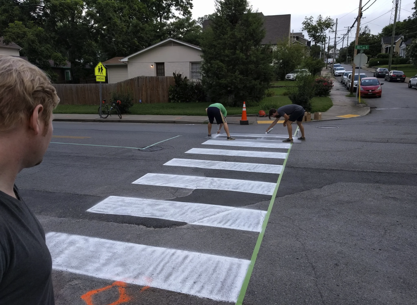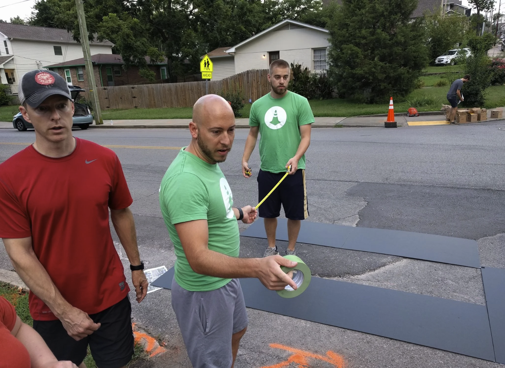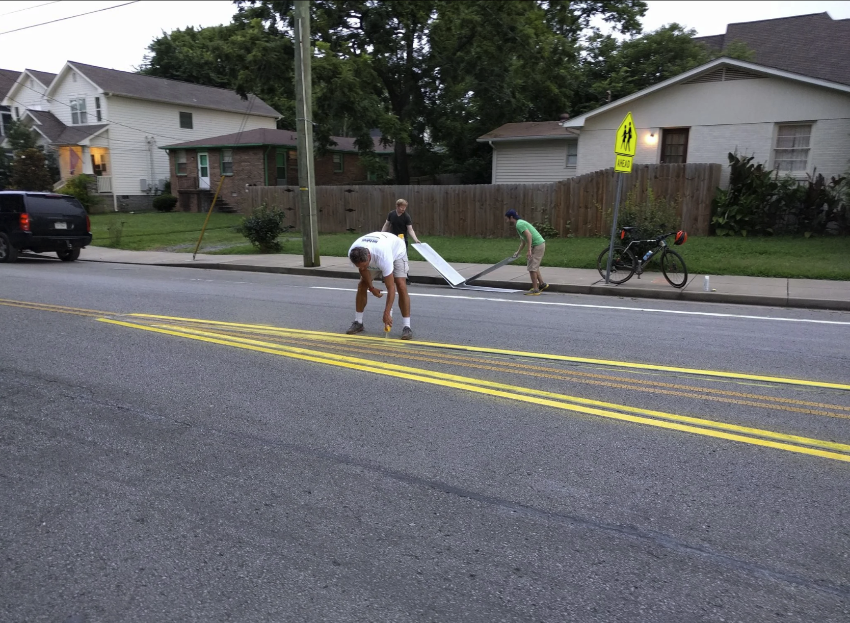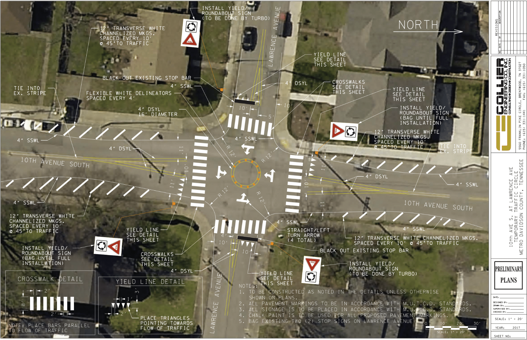 TURBO joined forces with neighbors in the 12 South Neighborhood to bring traffic calming techniques from the Belmont-Hillsboro traffic circle! This circle, located at the intersection of 11th and Gilmore Avenue, is the third installation of its kind near 12th Ave S.