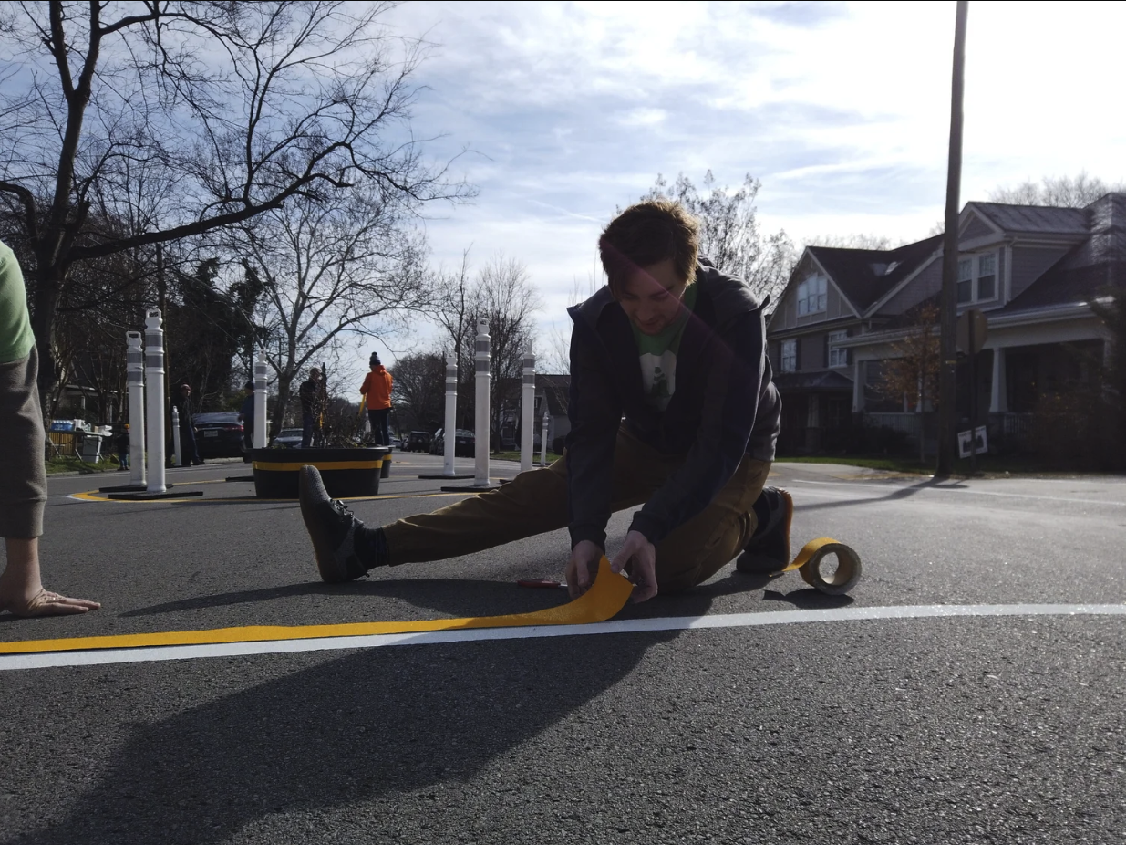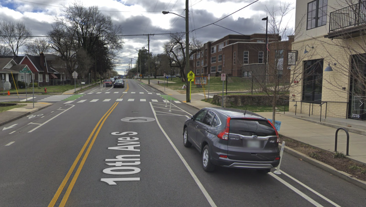 Metro Public Works installed cycle tracks on 10th Ave S, from Acklen Ave to Kirkwood Ave. The decision was made to forgo the the traffic circle at 10th and Lawrence Ave in their striping plan. However, Public Works considered the results of the pop-up installation which ultimately informed the final design.