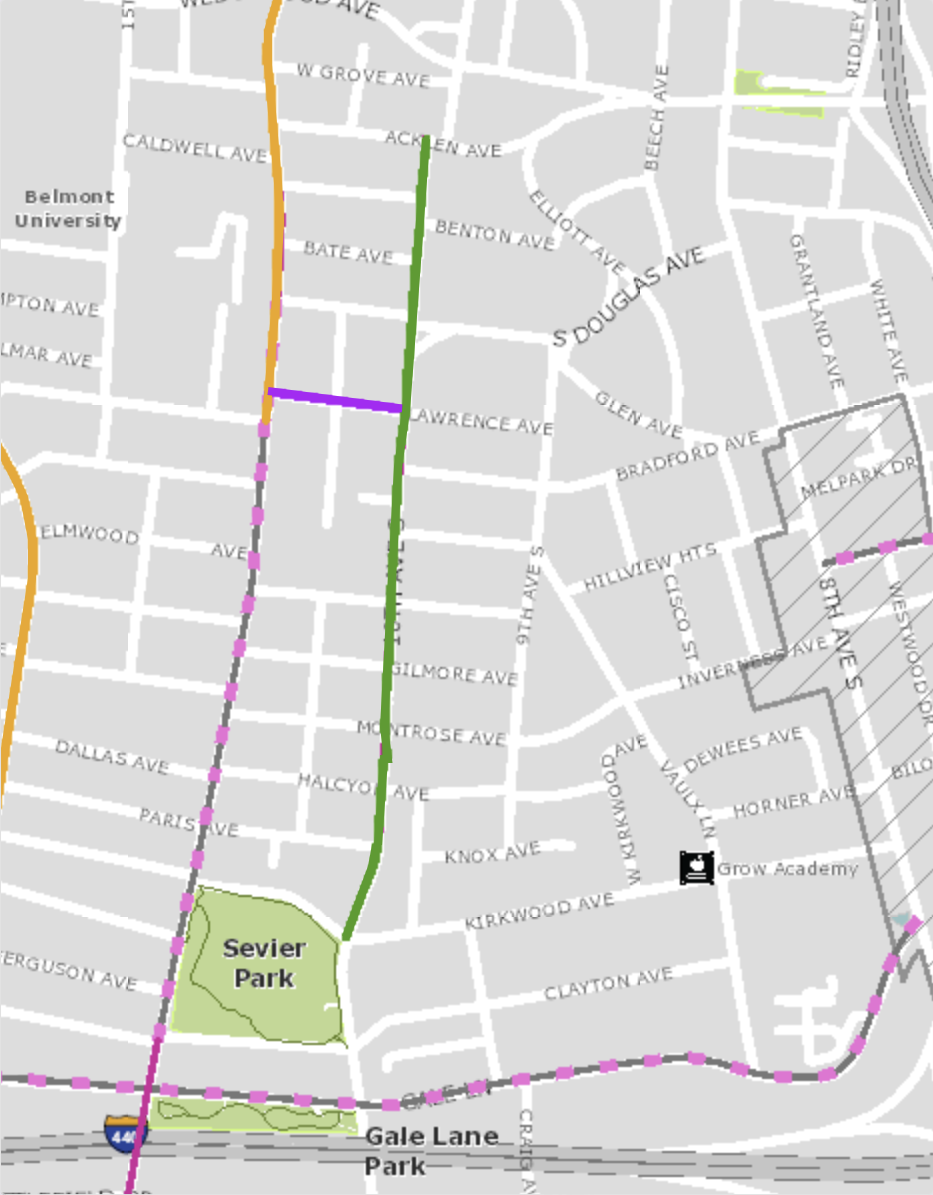 Dark purple: Neighborway connecting 10th Ave to 12th Ave