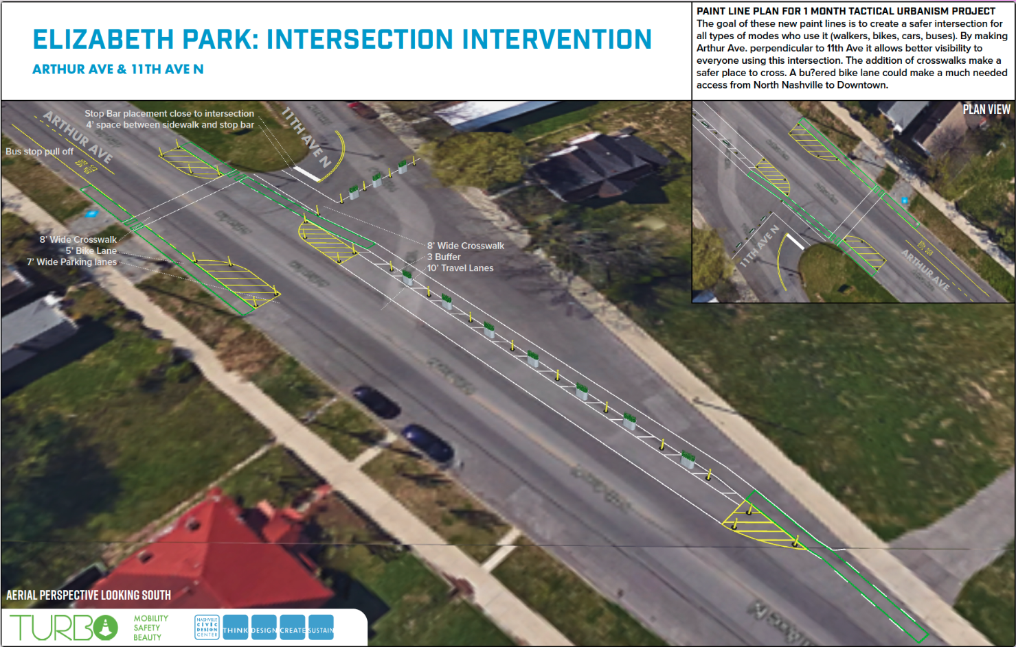TURBO has partnered with the Neighborhood Resource Center for the 5th Annual Nashville Neighborhoods Celebration on September 30th. Here TURBO plans to create a seating area for a food bazaar as well as collect ideas for this underutilized space at this intersection.
