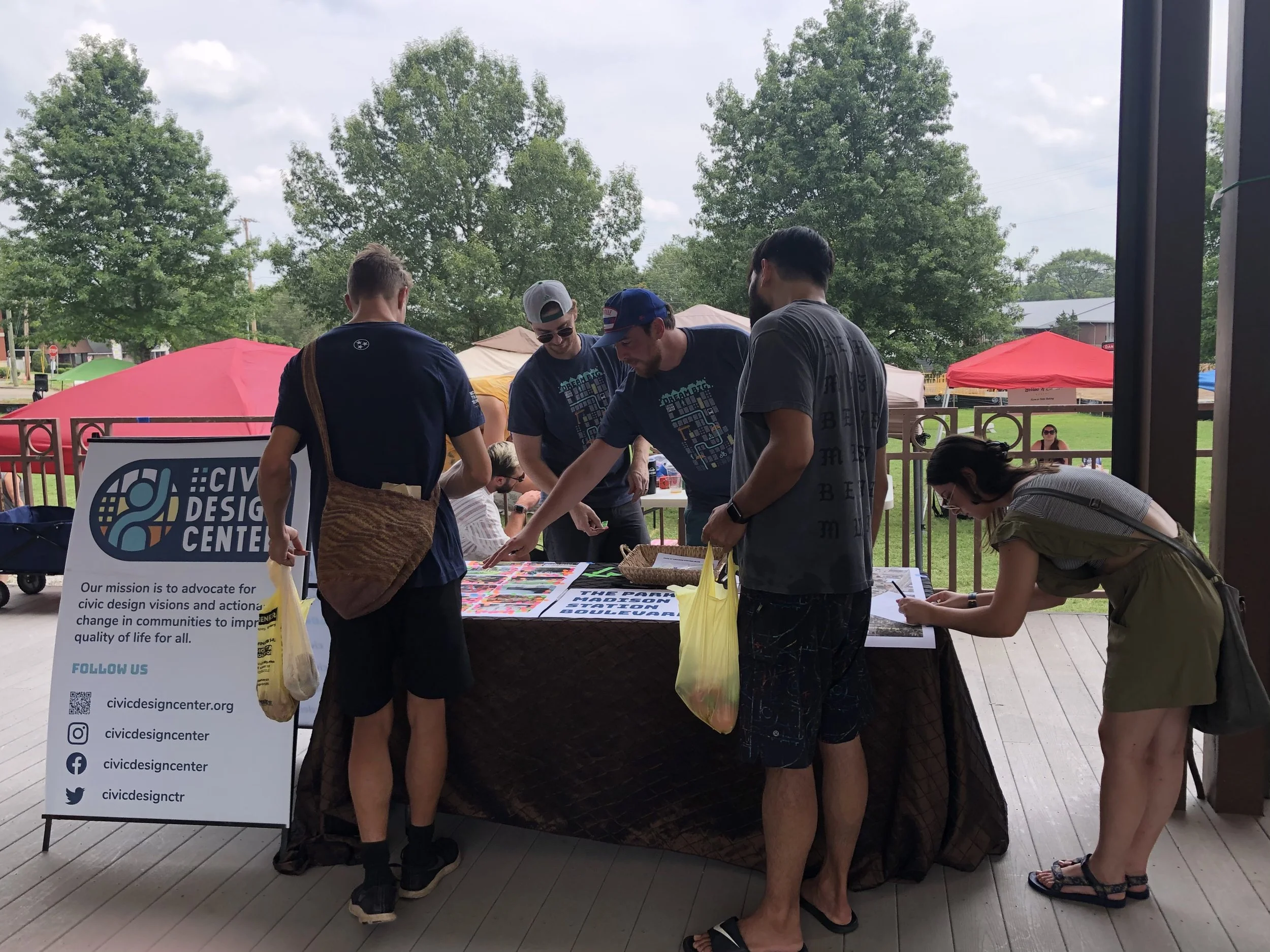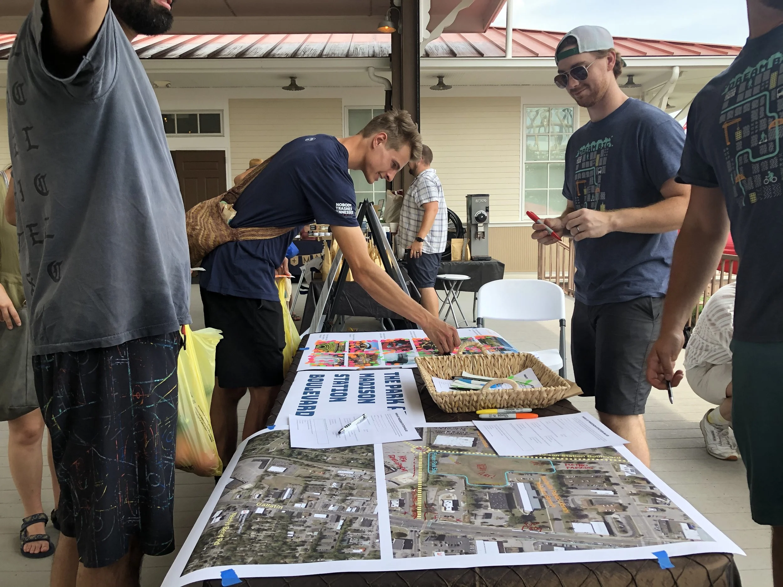 The community engagement strategy for the Park at Madison Station was to understand the roles of immediate stakeholders, or those who directly neighbor the park, and then utilize their influence to reach larger audiences. These immediate stakeholders included Amqui Station, FiftyForward, The Roots Barn, and the Nashville Public Library Madison Branch. We maximized the involvement of local community members by setting up stations during existing events at The Roots Barn, Farmer’s Market, and Library to spread information and get feedback. We reached 376 community members over the course of 4 public events in addition to independent public meetings. We received direct feedback from 181 community members through surveys, tabling, and visioning sessions.