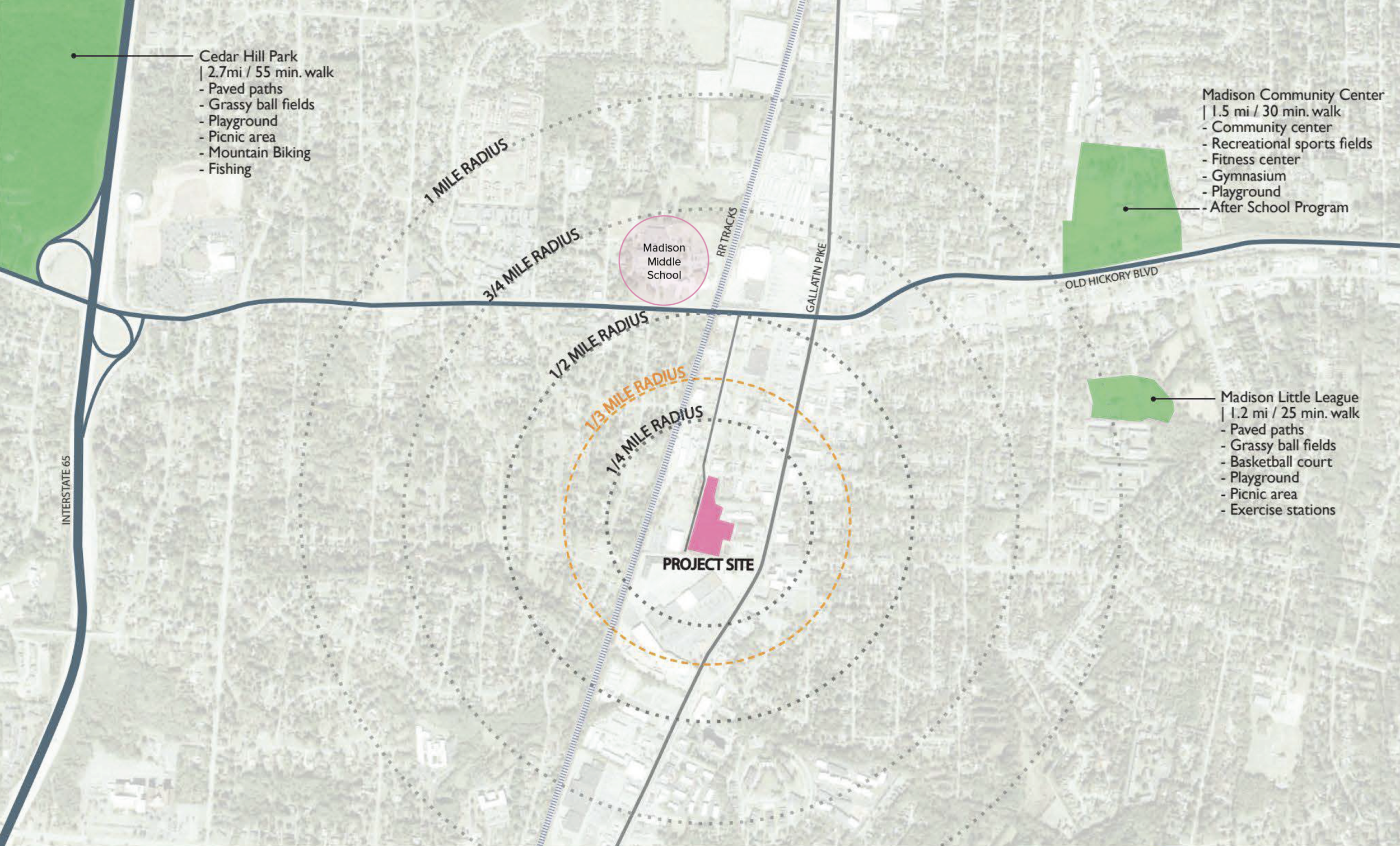 This park will serve around 6000 residents that live within 1 mile of the Park at Madison Station Blvd*. The new Madison Station development, which is the site to the south of Madison Station Blvd, will house about 1000 more residents who will be directly across the street from the park.