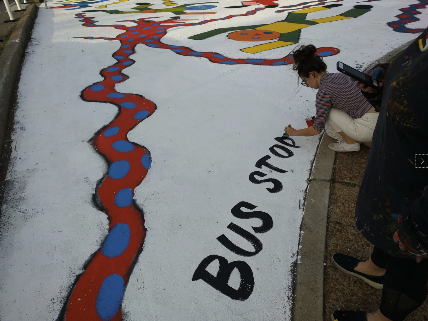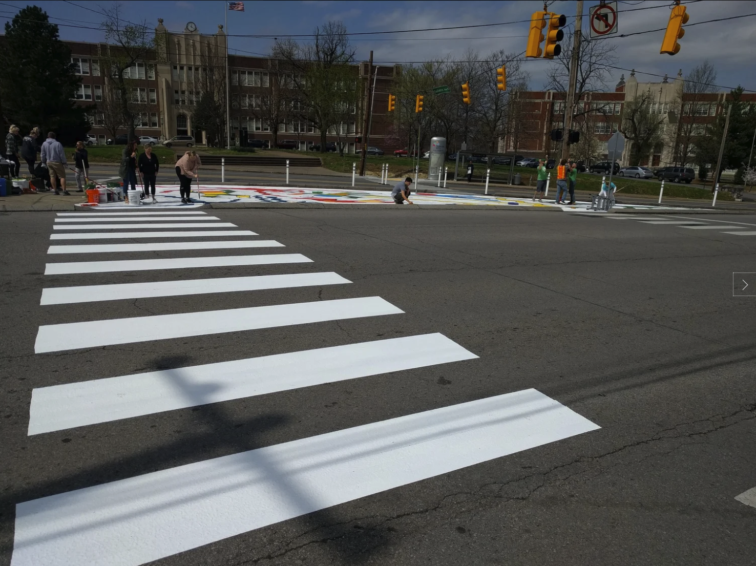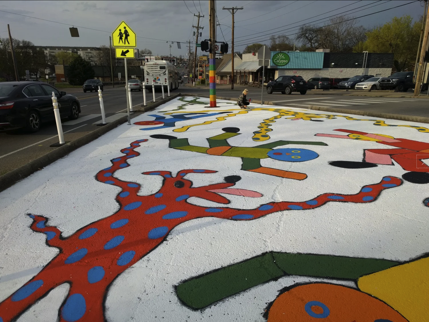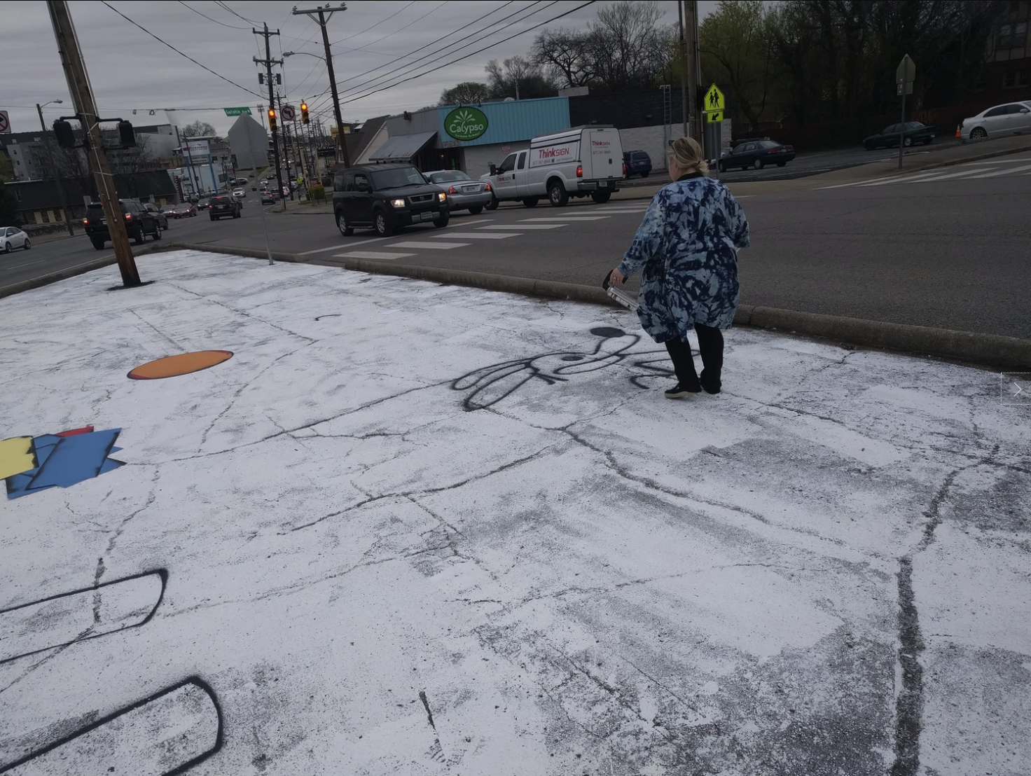 Preparing for the Complete Streets Conference, NCDC's TURBO Nashville, Ellie Caudill (Muralist) and volunteers from the Greater Nashville REALTORS® installed a temporary plaza, crosswalk, and mural. This project highlights an ongoing conversation in Nashville regarding the need for increased safety, public art, and public participation throughout Nashville.