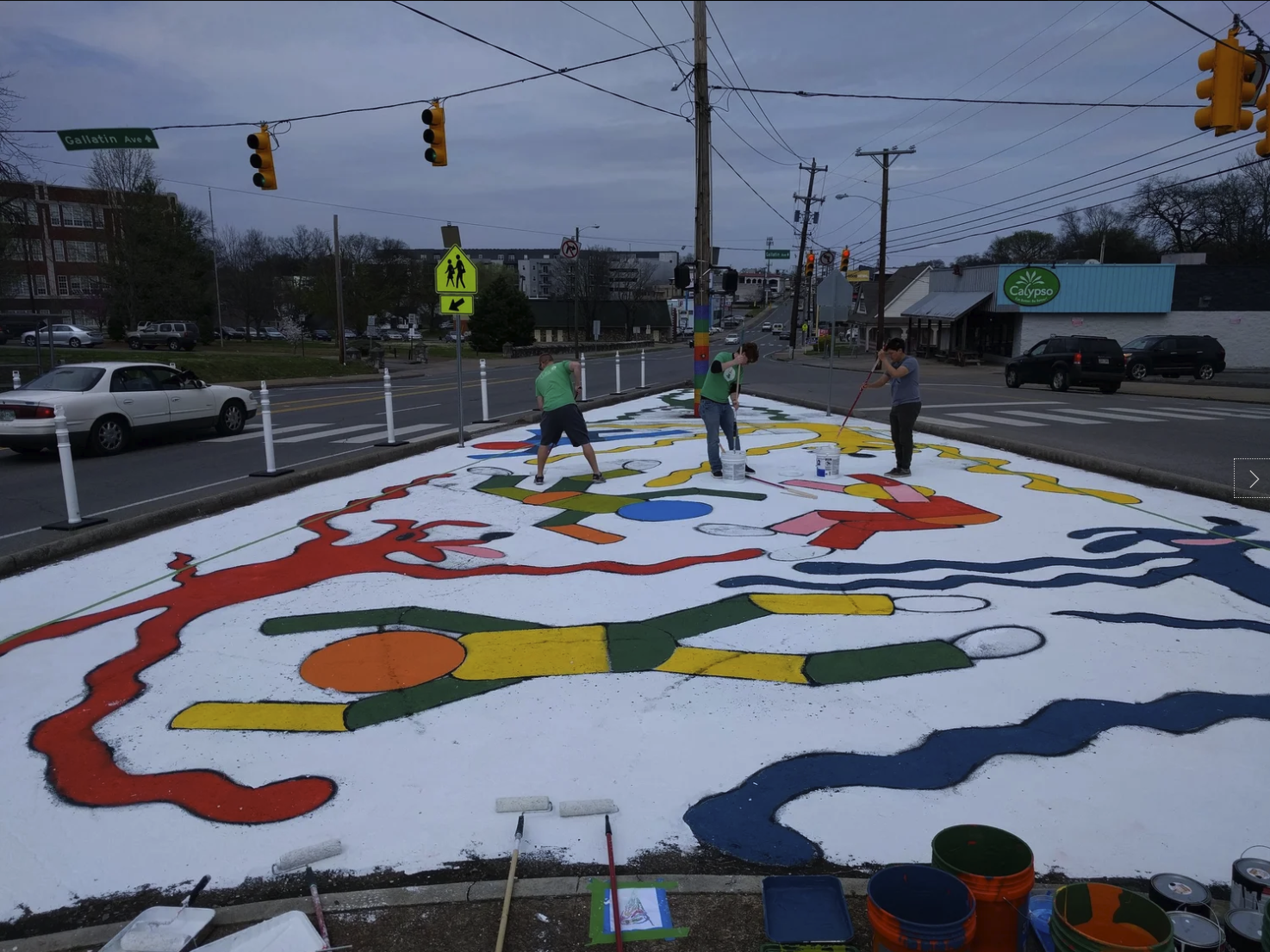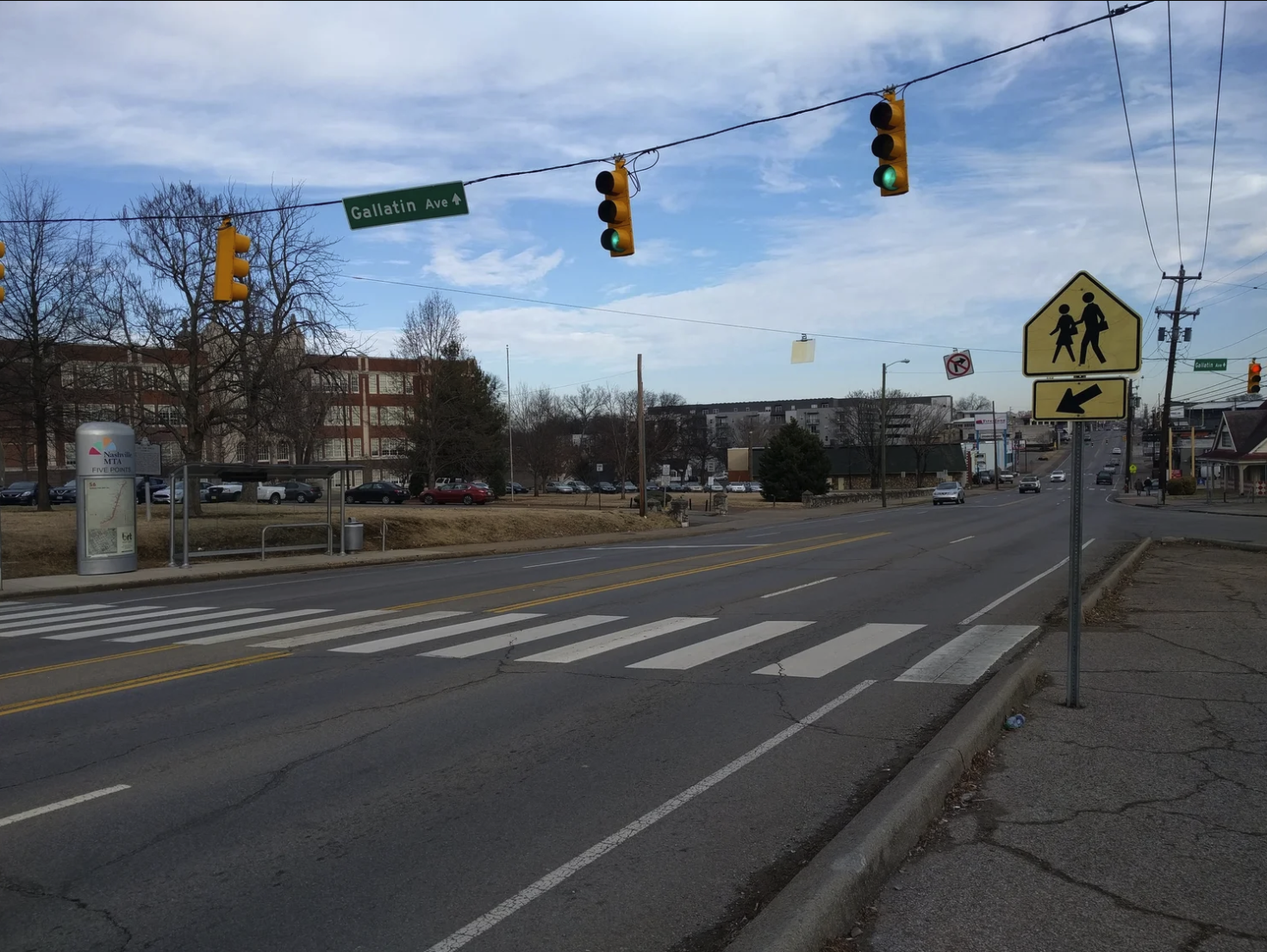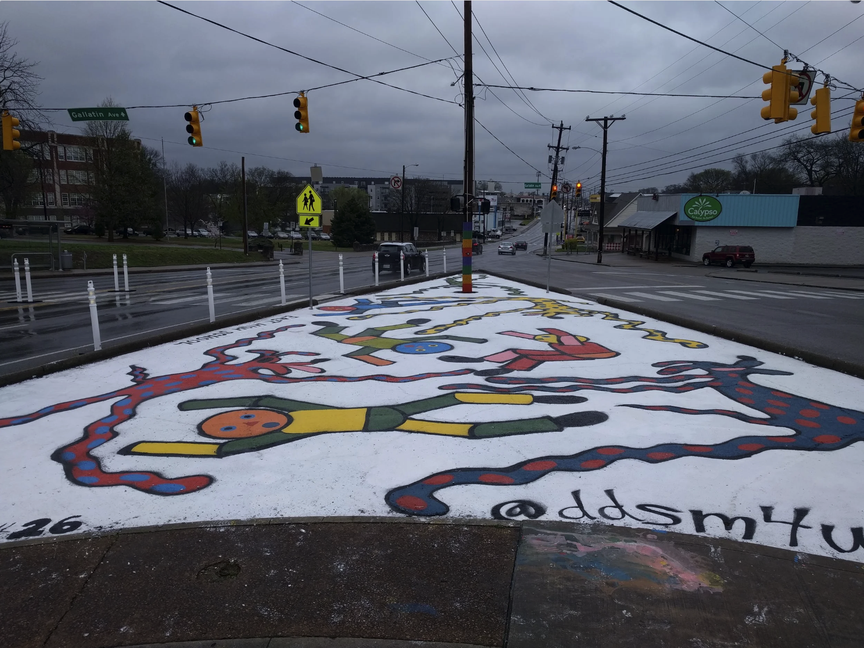 The work in for this project will be between the curbs on the south side of the intersection of 11th and Gallatin in East Nashville (in the Lockland Springs Neighborhood). The scope of this project includes safety and beautification. The methods includes public art in the form of a ground mural with wayfinging elements, an overhead rope sculpture, an enhanced seating element to the library retaining wall and a new crosswalk at the south side of the 11th and Garland intersection.