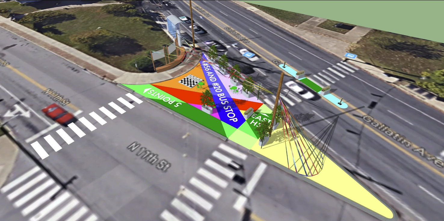 This installation seeks to explore how this intersection could be transformed into a fun informative place. This intersection could be an amazing art space that has the potential to be a nexus for East Nashville.