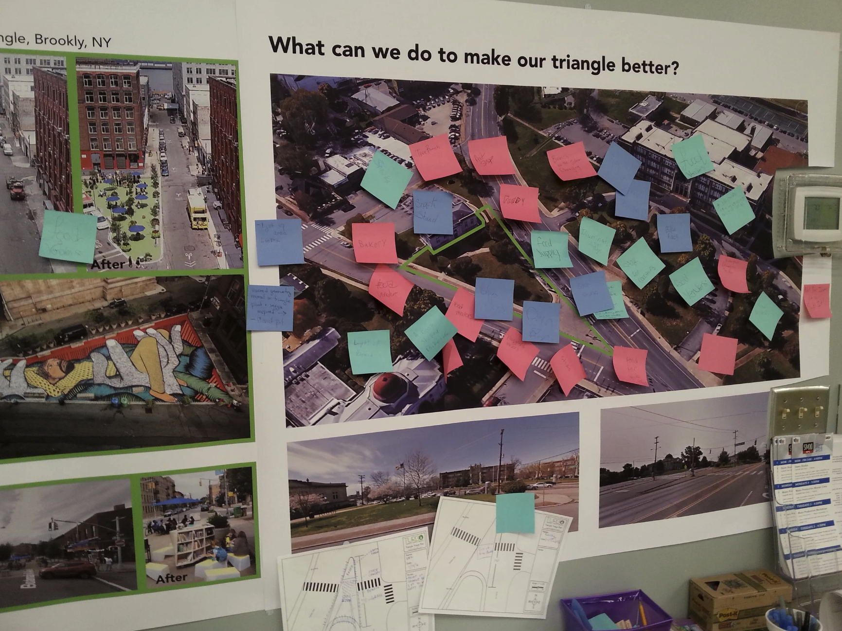 A TURBO Triangle Triage workshop was conducted by the Public Library that sits on the narrow wedge of the triangle space. During the 2016 school year, students congregated at the Library's after school program to give input on the space they inhabit every day.