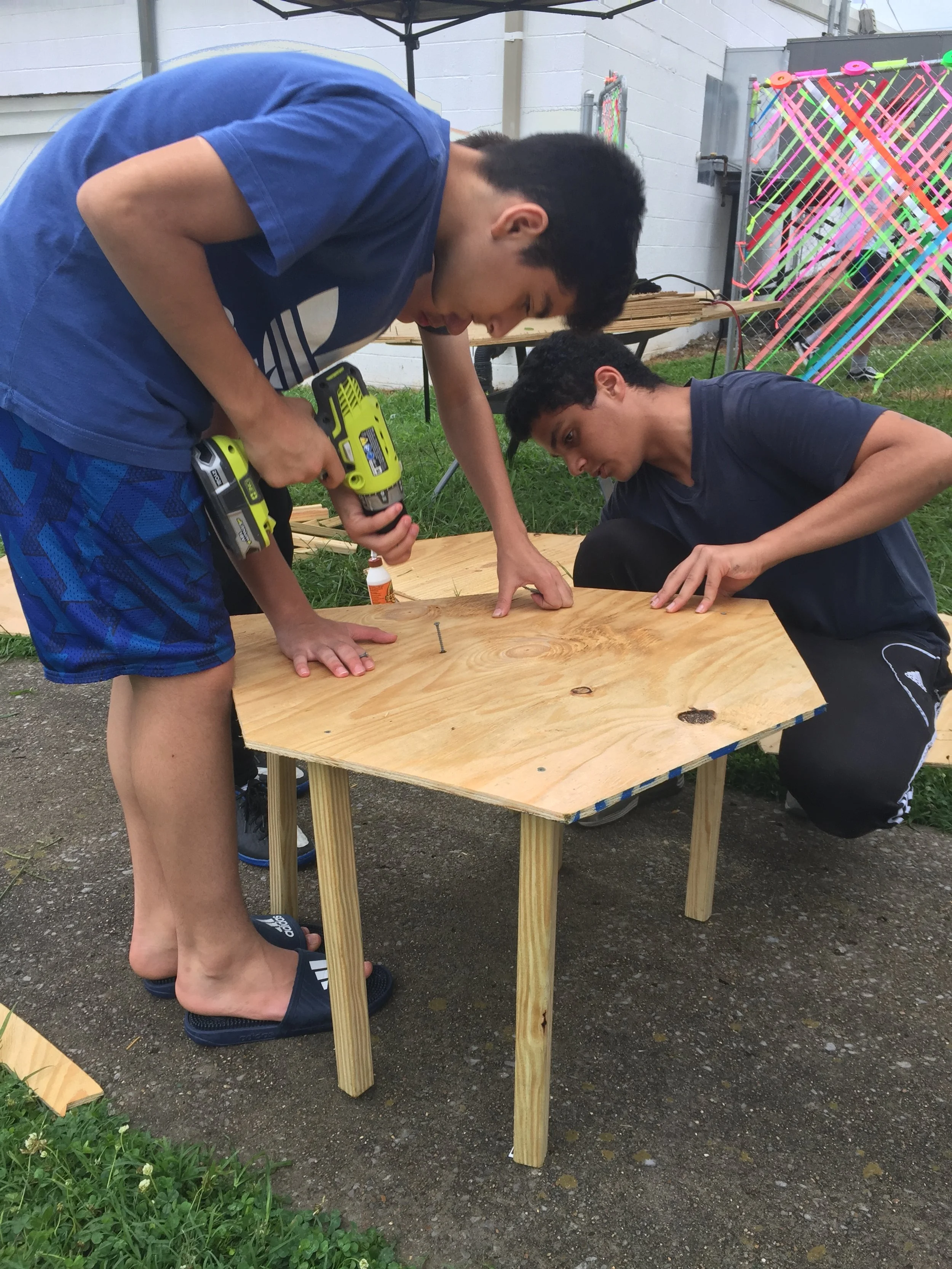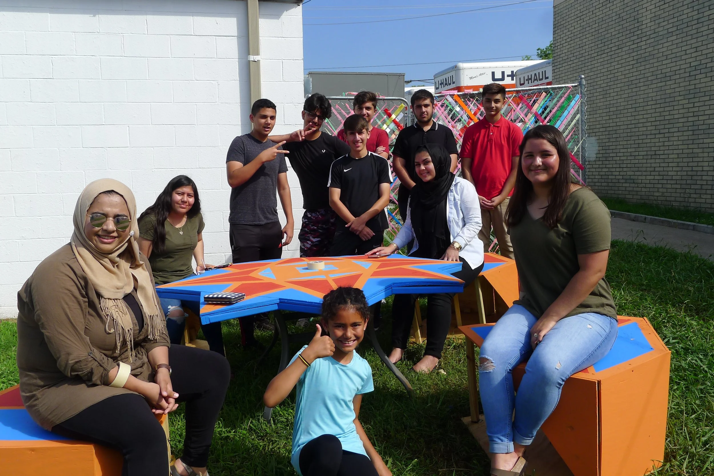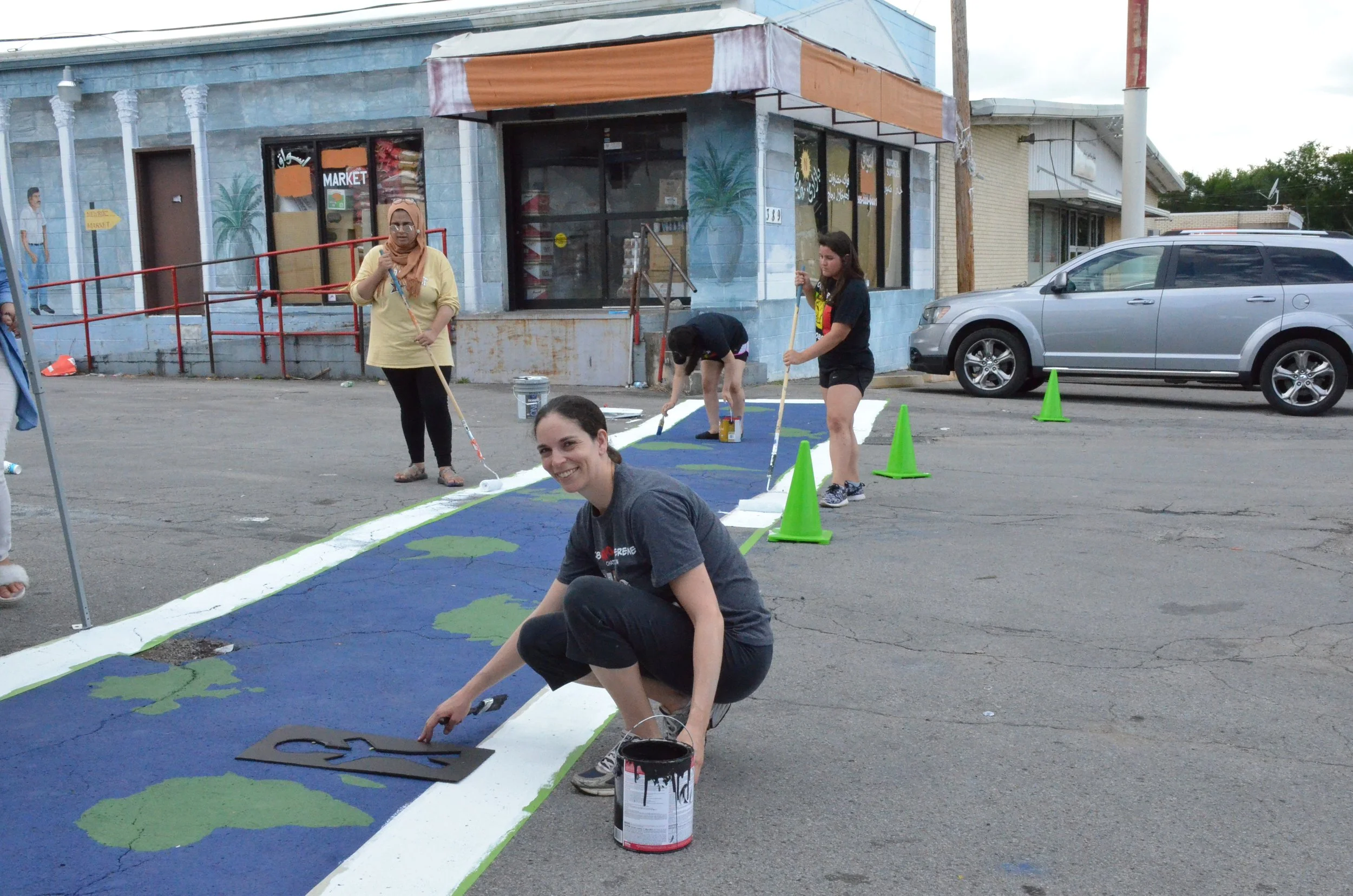 Community members and ENPC leadership envisioned the walking path based on years of visiting, working in and living in the area. One pivotal community event, in particular, inspired the path. In 2018, staff from The Salahadeen Center, Conexión Américas, NCDC and the Greater Nashville Regional Council led a “Design Your Neighborhood” internship with eleven Metro Nashville high school students and one elementary school student. The students recommended improvements for the Little Kurdistan area and even designed and built several projects including three artistic crosswalks, an outdoor table and benches and a landscaped storefront during the short three-week internship. Other ideas, such as sidewalks and walking paths throughout the area, needed more time to design and approve. Over the next year, ENPC leadership and Design Center staff worked to design the project, negotiated with business owners and community members, obtained the necessary permit and, on the morning of April 11th, 2019, built the walking safety improvements in five hours.
